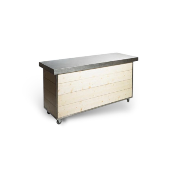 Wie een buffetbar huren wil die past binnen een informele, maar stijlvolle setting, kiest voor dit houten model met strakke opbouw. Dankzij het warme hout en het functionele formaat is deze bar een eyecatcher én een praktische werkplek voor bediening, presentatie of selfservice.