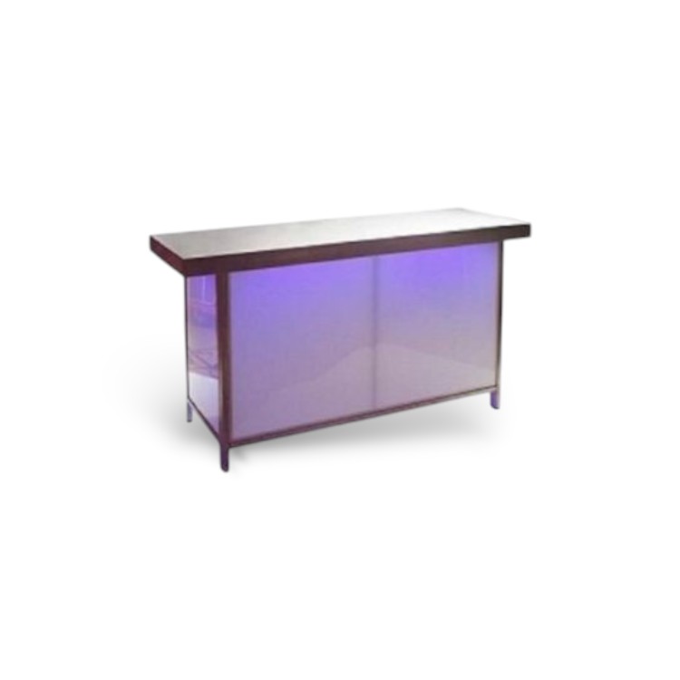 Klapbuffet met RVS blad en LED-verlichting huren? Modern, opvouwbaar buffet voor foodstations, drankopstellingen of presentaties. Inclusief op- en afbouw. Levering in Haarlem & de Randstad.