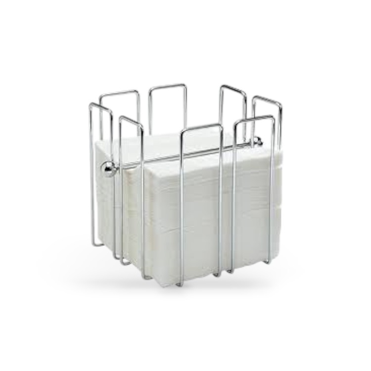 Met deze servethouder kunt u uw gasten voorzien van papieren servetten. Het metalen presse papier-balkje zorgt ervoor dat de servetten netjes op hun plek blijven als het waait.