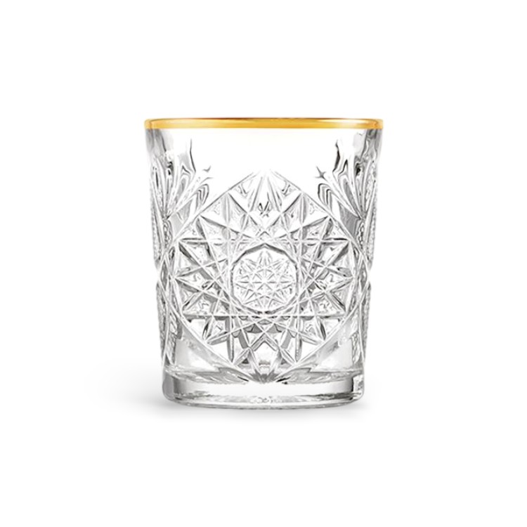 De Hobstar Tumbler goud 35 cl is een luxe glas met karakter. Met het klassieke geslepen patroon en de gouden afwerking is dit glas een echte eyecatcher op elke tafel of bar. Perfect voor het serveren van whisky, cocktails, frisdrank of water tijdens exclusieve events, bruiloften of high-end borrels.