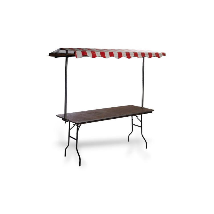 Rood-witte partytkraam met klassieke marktkraamlook. Ideaal voor uitgifte, foodstands of feestelijke aankleding op evenementen. Stevig en herkenbaar.