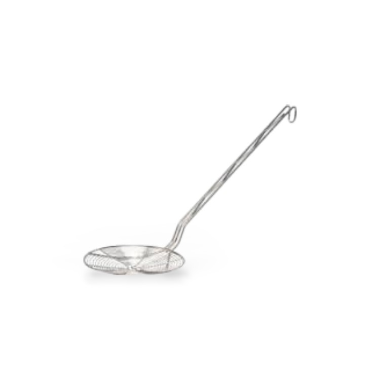 Deze friet schep heeft een lange steel.