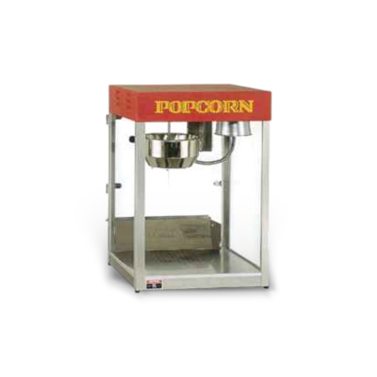 Professionele popcornmachine (220 volt) voor het bereiden van verse popcorn op locatie. Ideaal voor feesten, kinderactiviteiten of foodstands.