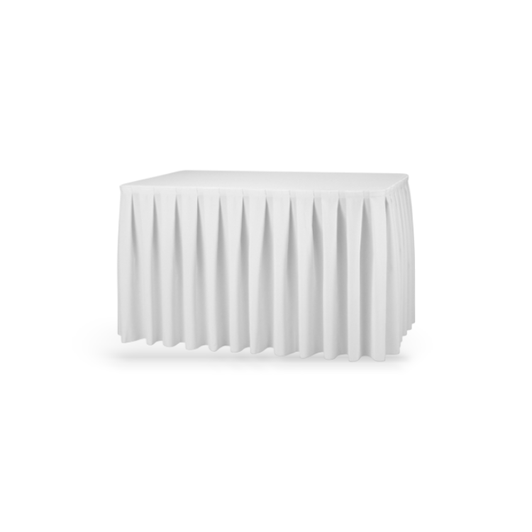 Zorg voor een nette afwerking van uw klaptafel door een tafelrok te huren.