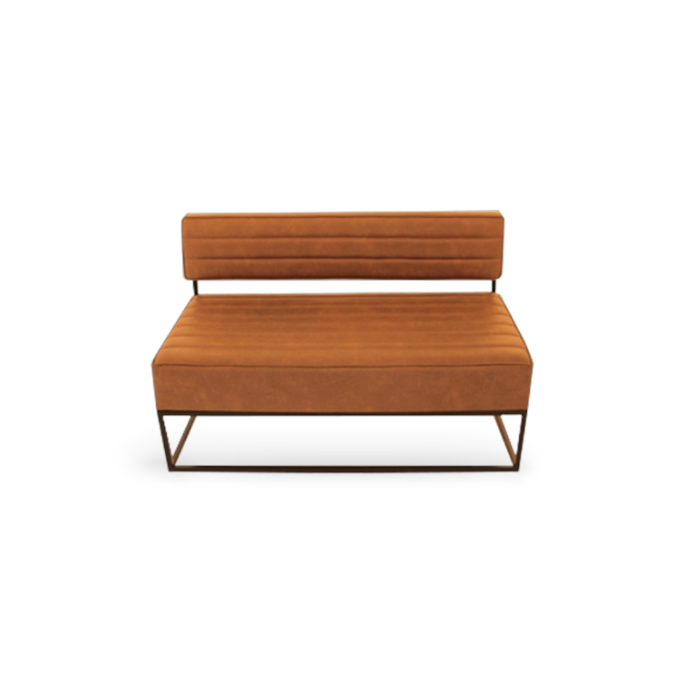 Zwart gecapitonneerde lounge bank met rugleuning.