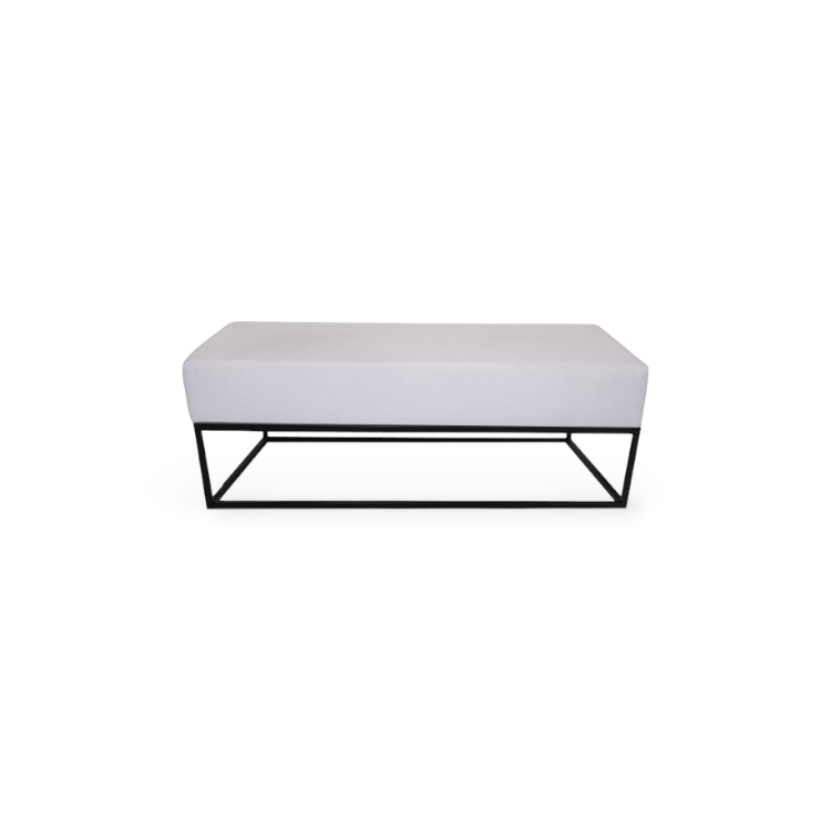 Wit lederen lounge poef op stalen onderstel.