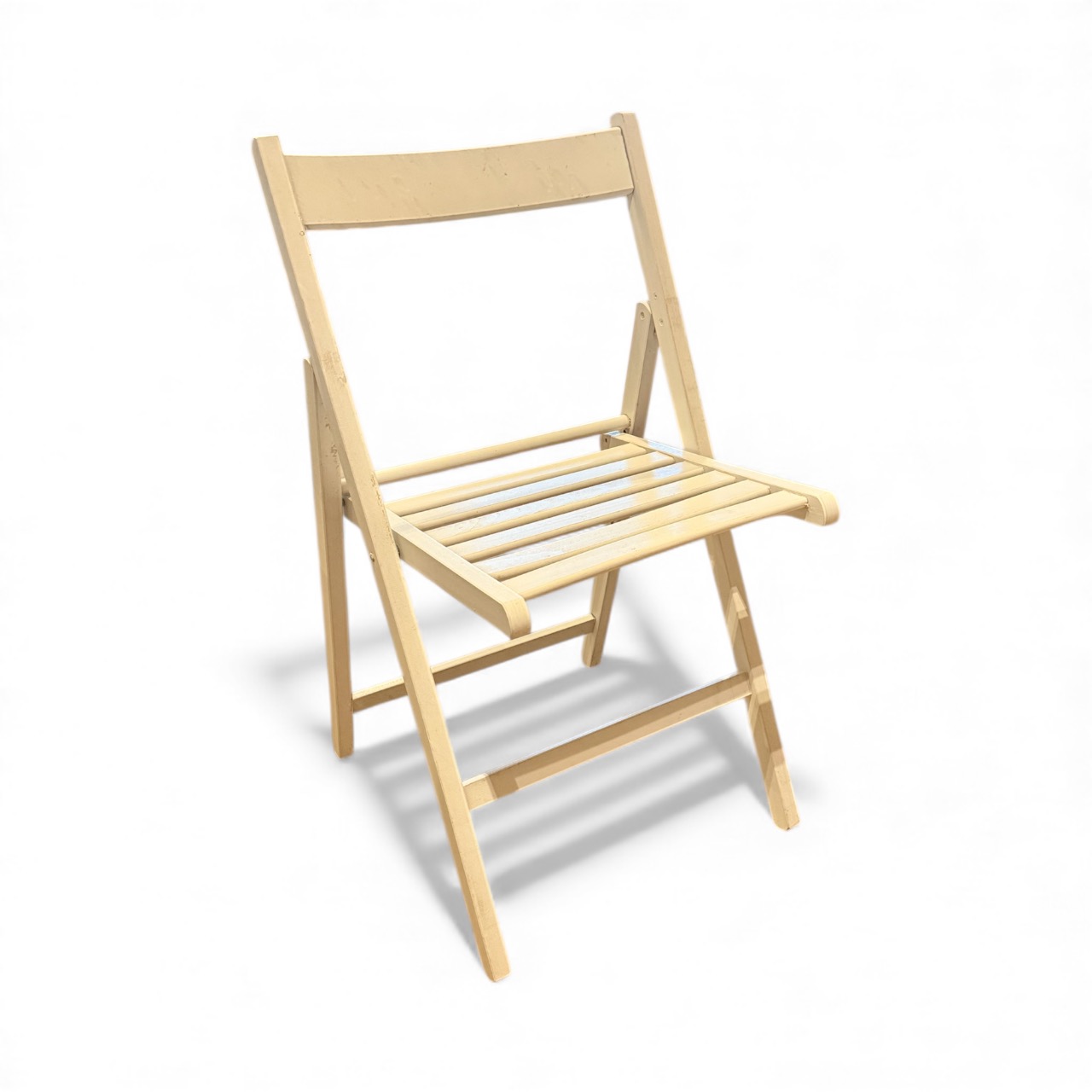 Huur de Klapstoel Hout bij Broers Verhuur Haarlem. Een stijlvolle houten stoel – perfect voor bruiloften, diners en buitenfeesten in Haarlem, Bloemendaal en Leiden.