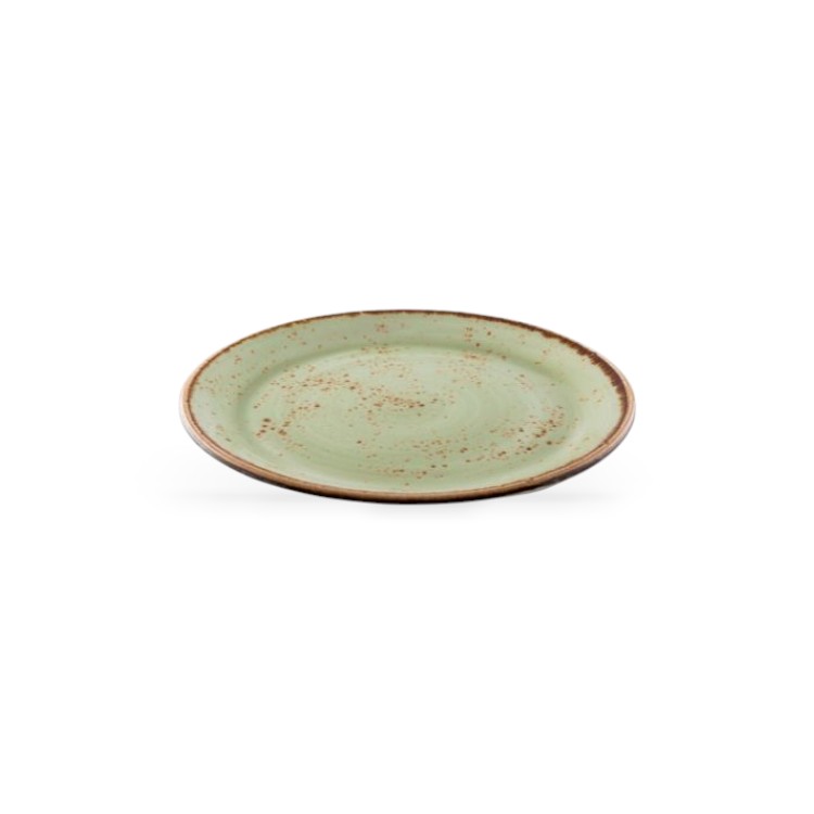Steelite groen dinerbord Ø25 cm huren? Rustiek keramieken bord met unieke kleur en glazuur – perfect voor hoofdgerechten of presentatie. Schoon geleverd, inclusief afwaskosten. Etensresten graag verwijderen.