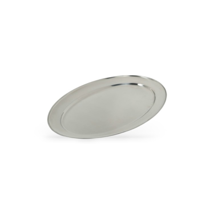 Deze ovale schaal heeft een lengte van 45 cm en is van het materiaal RVS.